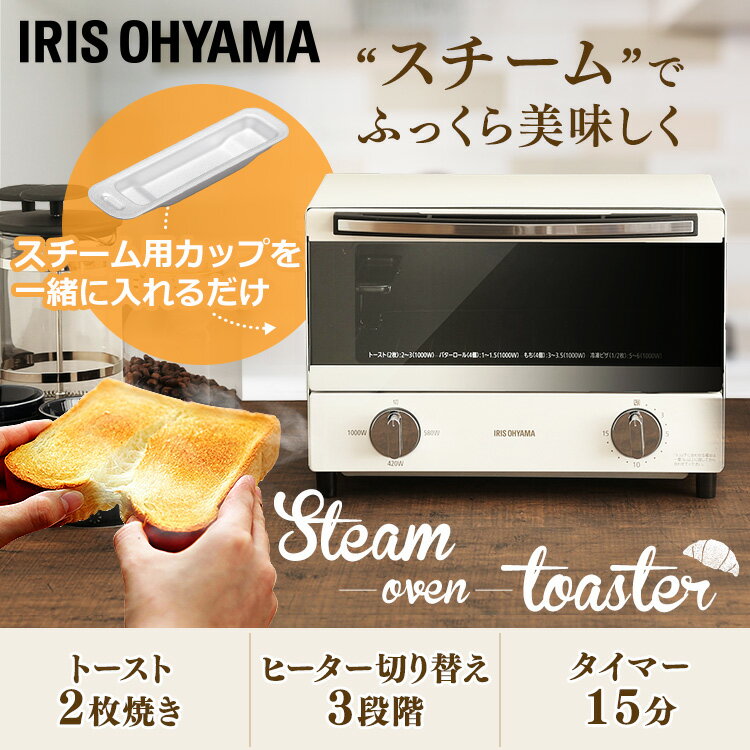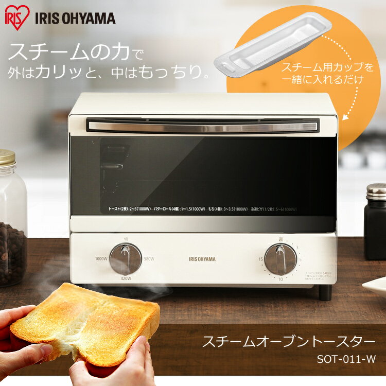 【あす楽対応】オーブントースター スチーム 2枚 SOT-011-W新生活 送料無料 オーブントースター トースター スチーム オーブン トースト 1000W タイマー パン ブレッド 朝食 家電 キッチン家電 調理家電 一人暮らし コンパクト オシャレ おしゃれ アイリスオーヤマ